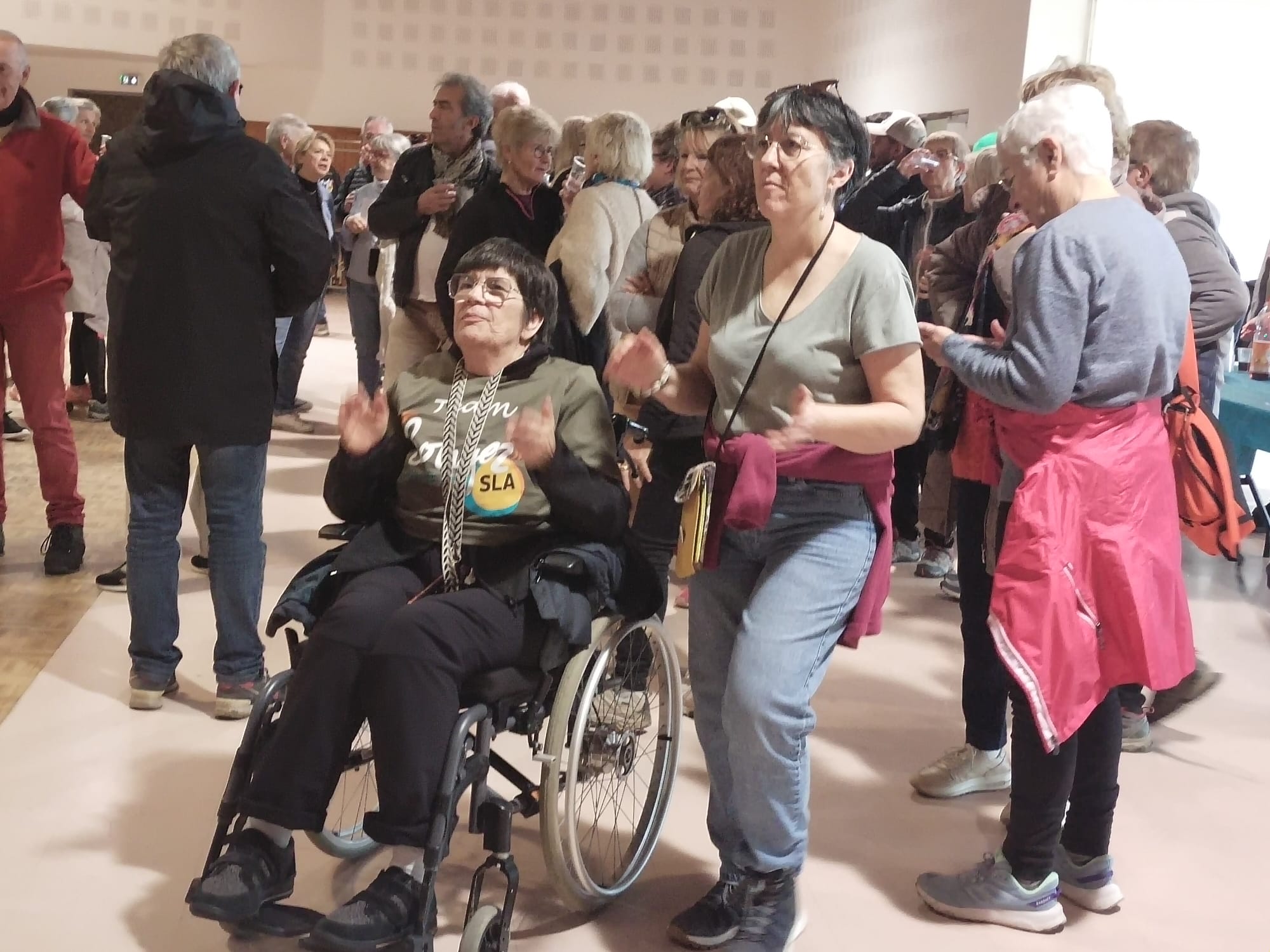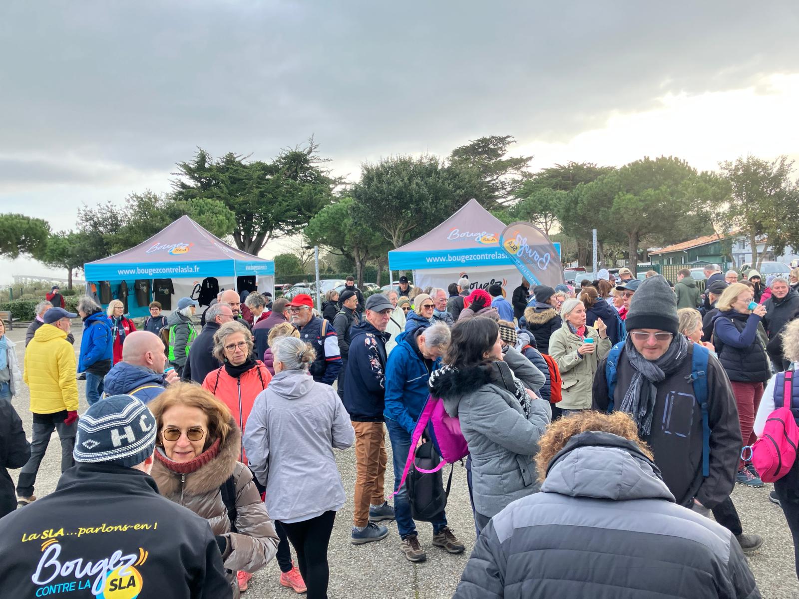 Grace aux généreux partenaires, les premiers inscrits pouvaient patienter en savourant viennoiseries et boissons chaudes. Avant le premier départ Jocelyne, membre du conseil collégial, rappelait à chacun le but de cette manifestation, à savoir communiquer sur la SLA et récolter des dons pour soutenir la recherche.