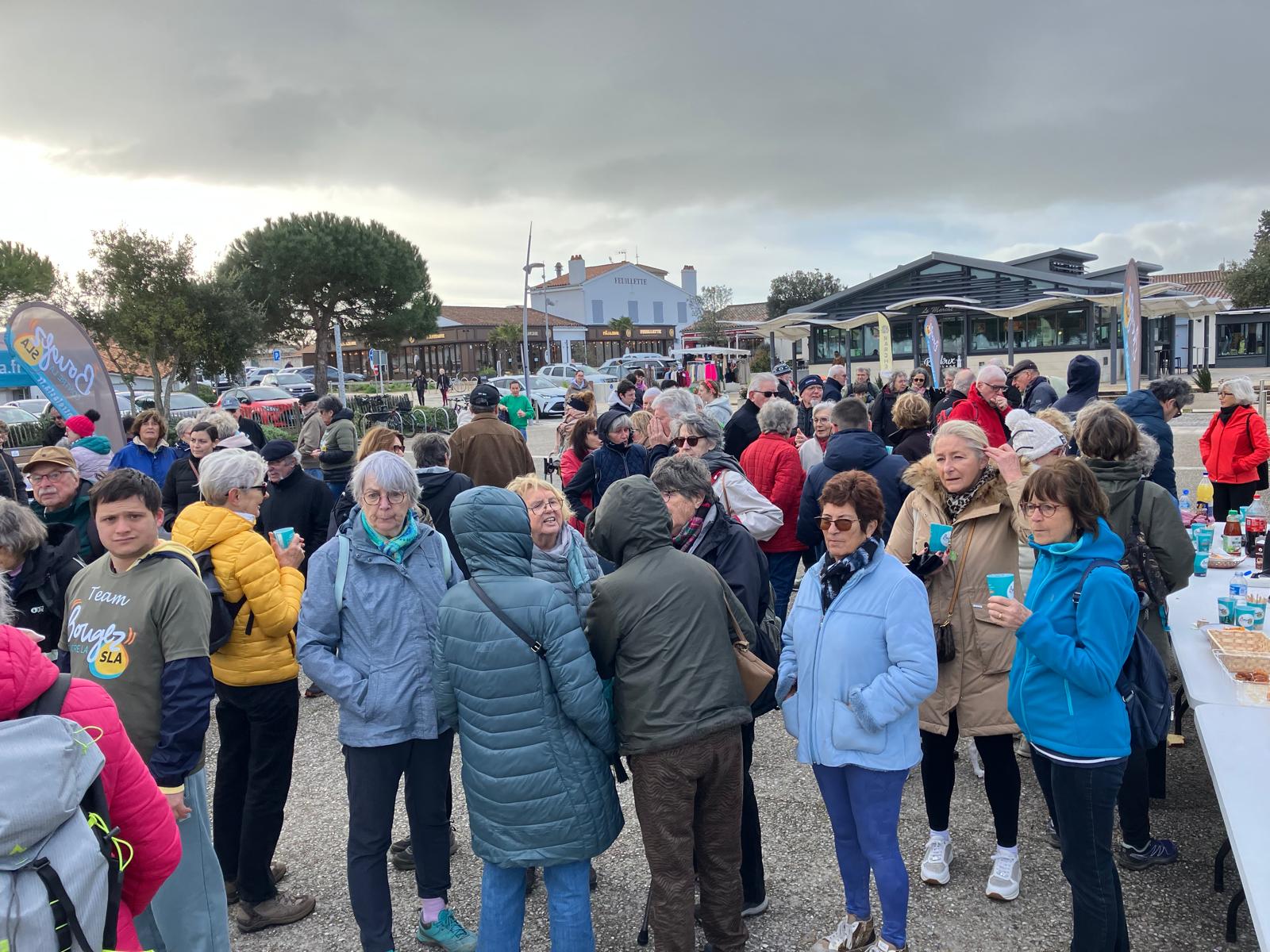 Grace aux généreux partenaires, les premiers inscrits pouvaient patienter en savourant viennoiseries et boissons chaudes. Avant le premier départ Jocelyne, membre du conseil collégial, rappelait à chacun le but de cette manifestation, à savoir communiquer sur la SLA et récolter des dons pour soutenir la recherche.
